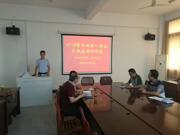 近日,我院机电一体化教研室为适应高水平技能型大学建设的要求,于系部会议室召开专业建设例会。教研室全体教师及一名校内督导参会,会议由实训室负责人主持。