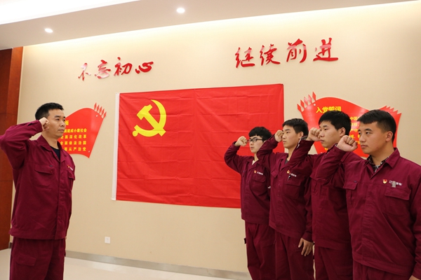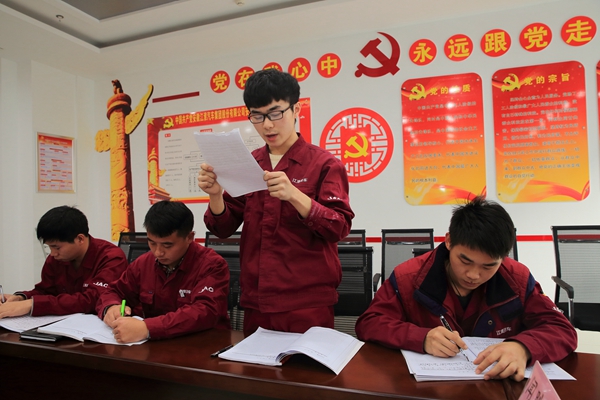 会上,江淮汽车安庆分公司生产党支部书记主持召开了机电系与江淮共同发展培育的预备党员的转正会议。各预备党员同志汇报了个人在思想、生活、学习、工作等方面的表现,表达了他们入党的决心和加入中国共产党的强烈愿望。我系入党介绍人和江淮公司培养人分别对其学习、工作、实践活动等方面进行介绍与评价。随后拥有表决权的党员对预备党员转正一事进行投票表决。经正式党员的一致表决,参会的各位预备党员顺利通过党组织审核,成为正式党员。随后,四名正式党员在江淮汽车安庆分公司生产党支部书记的带领下,庄重宣读入党誓词。