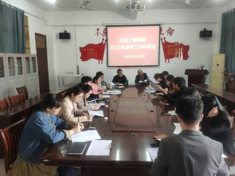 为切实做好迎接2020级新生的准备工作,机电工程学院于2020109日在1栋教学楼208会议室召开迎新工作布置会。院负责人刘磊同志出席会议,院分管学生工作同志主持会议,迎新工作小组成员及新生辅导员老师参加会议。