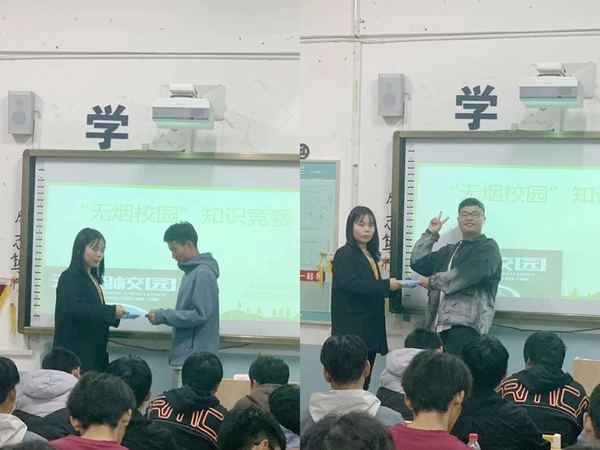活动中,老师全程参与,并对试题进行细致深入的现场讲解答疑,进一步增加了同学们对戒烟控烟的了解。随后同学们分别上台分享了自己对禁烟活动的见解,张阔强同学说道“吸烟不但会影响自身的身体健康,二手烟的危害更加严重,希望身边的同学都能从我做起,相互监督”。张乐同学也表示“吸烟不仅会伤害身体,吸烟的开销也是一笔不小的费用,希望同学们都能养成勤俭节约的好习惯,自觉抵制吸烟”。同学们踊跃发言,现场气氛十分热烈。