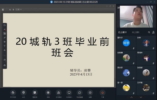 根据安排毕业生返校后各班组织召开了以“文明离校”为主题的班会,就毕业生返校后的具体事项进行详细说明并就安全、就业进行了重点强调。各班辅导员对于部分因工作原因未能及时返校的学生专门组织召开了线上主题班会,旨在及时地掌握每个学生的动态,排查学生实习期间安全隐患,将学校的关怀传递到每个学生。