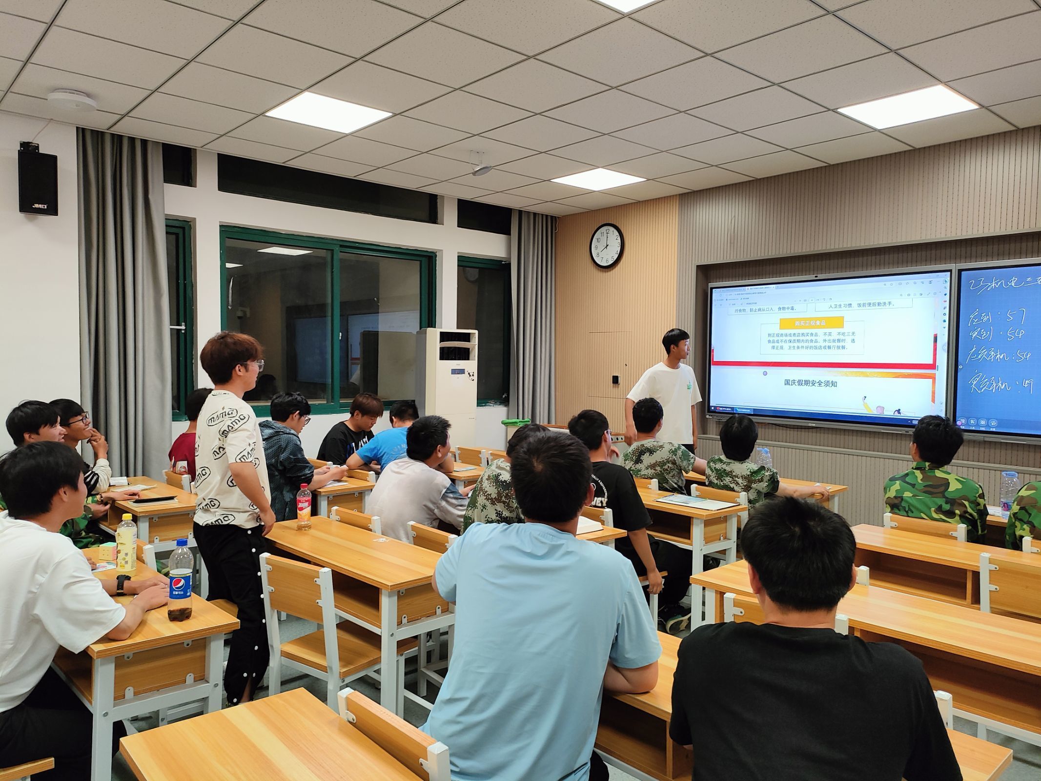 班会内容涵盖防火安全、交通安全、食品安全、防盗与反诈等方面,辅导员班主任就国庆期间常见的安全隐患、防范措施等进行了详细解说。