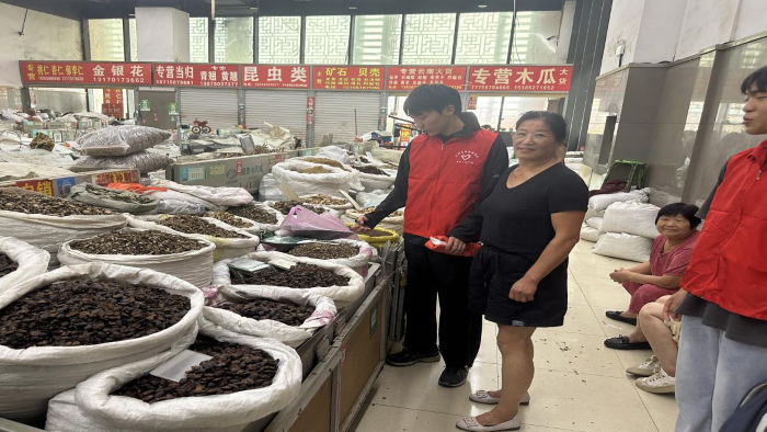 他们首先踏入了亳州中药材专业市场,浓郁的药香扑面而来,摊位上各式各样的中药材琳琅满目,从常见的枸杞、党参到珍贵的人参、鹿茸,应有尽有。在这里,学生们深刻感受到了中药材产业的繁荣和中医药文化的深厚底蕴。随后,实践团前往康美中药城,与经验丰富的药农深入交流,进一步加深了对中医药文化的认识,深刻体会到中医药产业的现代化发展。