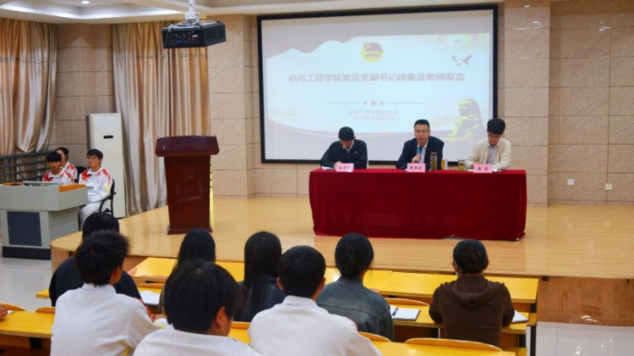 10月16号,机电工程学院在1号教学楼216教室举办2024年“青马工程”暨第十五期学生干部培训班开班仪式。院团总支书记、团总支副书记、专职辅导员代表及“青马工程”培训班全体学员参加了本次开班,院党总支副书记徐英武出席并做题为《青春之时,一马当先》的报告。