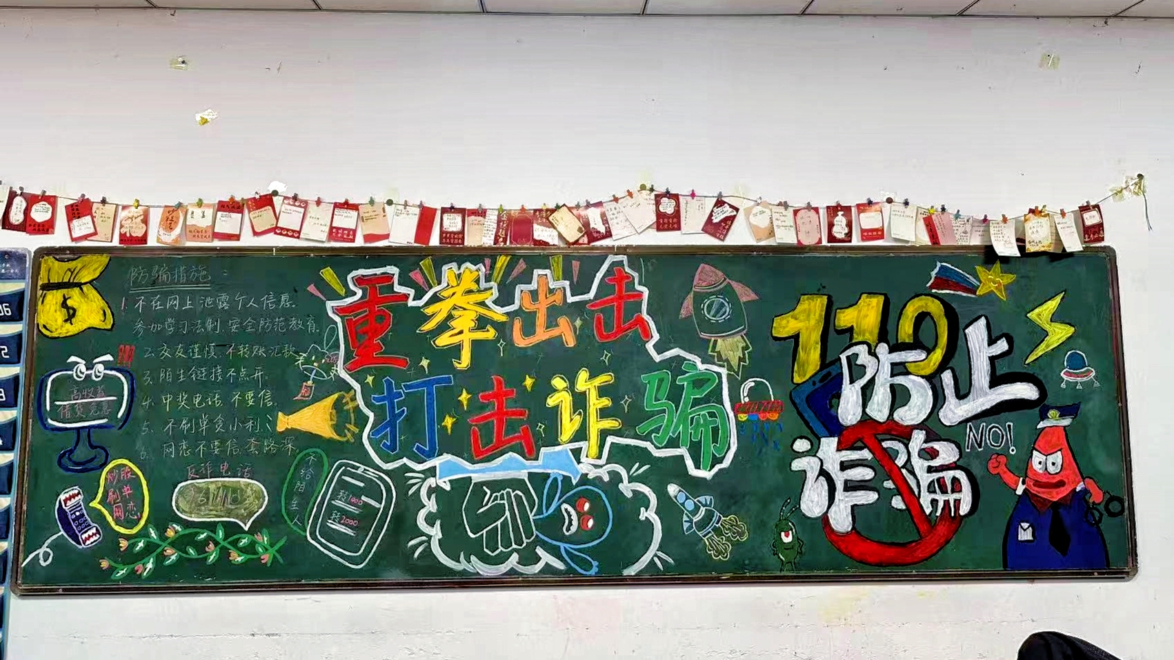 在本次反诈宣传活动中,24数控2班的创新实践尤为亮眼。该班成立“反诈专项活动小组”,创新性地发动全班同学共同参与反诈题材短视频的创作与拍摄。从剧本构思、角色分配到现场拍摄、后期剪辑,全班同学深度沉浸其中,人人都是反诈宣传的“主角”。他们结合身边可能遇到的电信网络诈骗陷阱,如模拟“刷单返利”、“冒充客服退款”、“游戏装备交易诈骗”等场景,生动拆解诈骗套路。拍摄之余,他们还发动全班同学共同参与创作主题黑板报、设计讲解PPT,让同学们从“被动接受防诈教育”到“主动传播反诈知识”。