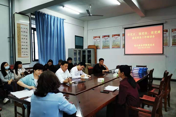 为促进基层党建工作,以高质量的党员发展工作向建党100周年献礼,5月19日下午,现代商务学院党总支举办党务知识专题培训,特邀校党委组织部副部长王金根为全体党员授课,现代商务学院全体党员教师近30人参加了此次学习培训。