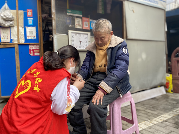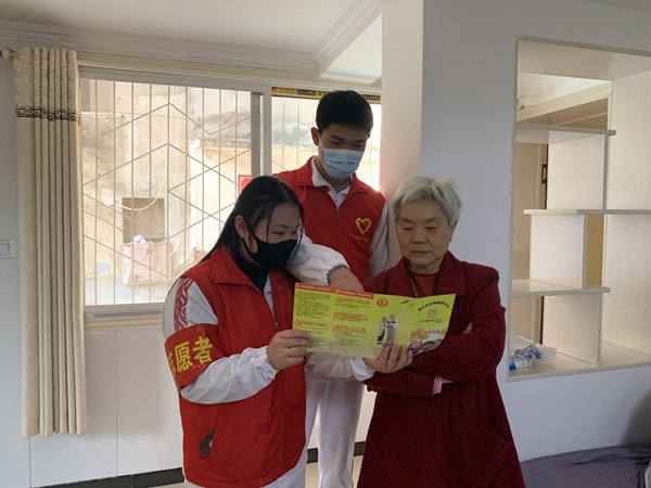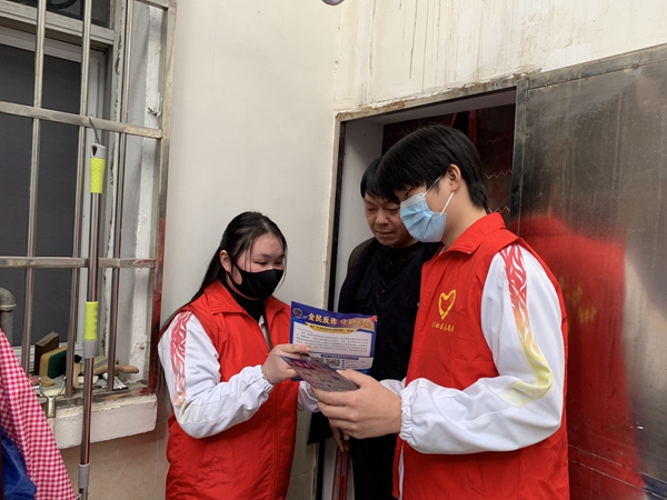 老师和同学们穿着统一的志愿者服装,带上工具来到方新胜、洪述生等孤寡老人家中,帮助打扫家里的卫生死角、理发和剪指甲,同时在志愿过程中陪老人聊天,倾听他们的心声,主动留下联系方式与老人们结成帮助小组,使他们充分感受到关怀和温暖。随后志愿者们来到社区的街道和广场,有的和社区的工作人员一起为居民宣传普及防电信诈骗知识,提高防范意识和自我保护能力;有的打扫广场、清理垃圾,把各个角落打扫的干干净净。