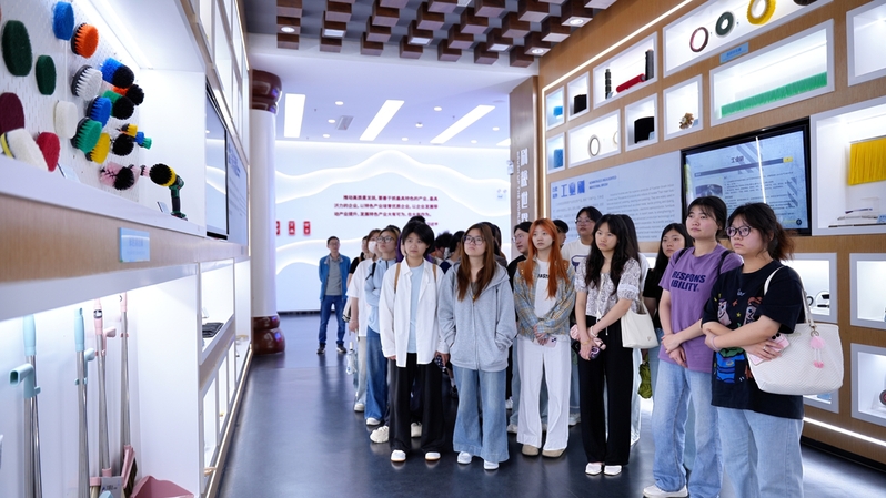 现代商学院党总支书记、院长金启胜带领分管学生工作负责人、2026届毕业班辅导员代表及20余名26届毕业生参观园区,感受“中国刷业之都”,了解园区平台,了解源潭制刷产业链。