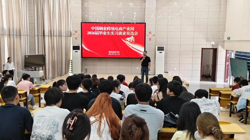 5月14日,现代商务学院成功举办2026届毕业生首场实习双选会。中国刷业跨境电商产业园(潜山源潭)有关负责同志到会宣讲。现代商务学院23级辅导员、26届毕业生代表近二百余人参会。