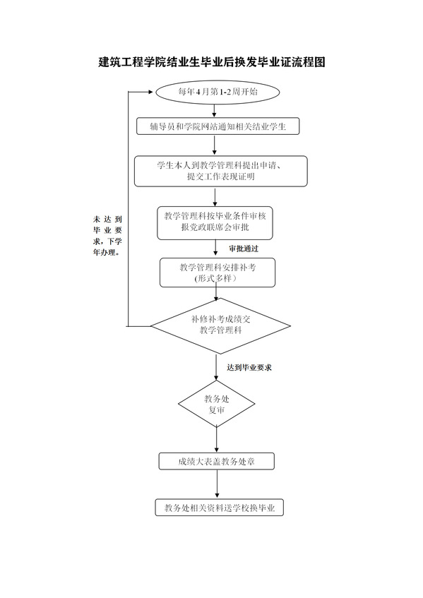 建筑工程学院结业生毕业后换发毕业证流程图