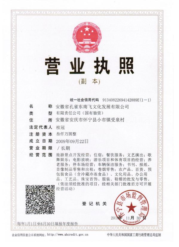 工作地点:安庆市怀宁县小市镇孔雀东南飞景区