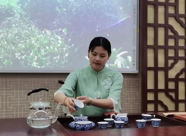本次读书沙龙旨在将书香与第二课堂,将传统文化与技能大赛相结合,挖掘课程思政元素,积极促进第一课堂教学与第二课堂活动有效融合。活动第一环节为“墨韵茶香教学成果展”,以2022年职业技能大赛茶艺项目《此处安心是吾乡——振兴乡村 守住乡愁》、《拼搏奋进》开场,辅以茶艺、书法、插花,不仅展现职业技能大赛训练成果,实现以赛促训,以赛促学,同时沉浸于墨韵茶香、书里芳华的意境,感受着一花一世界、一叶一乾坤之美。同学们精彩的茶艺表演、遒劲有力的书法作品、芬芳灵动的插花作品赢得了阵阵掌声!