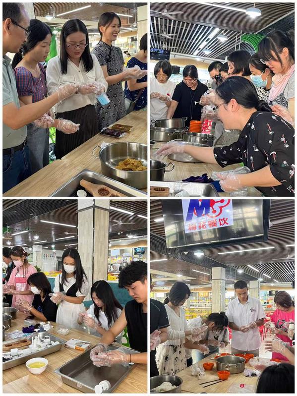 7日下午,在学校食堂二楼梅花餐厅,学院师生代表围坐一堂,自制手工月饼,共同感受传统文化,共度团圆中秋。参加活动的老师和学生大多数是第一次亲手制作月饼,大家兴趣盎然、跃跃欲试。调饼皮、搓饼皮、拌豆沙蟹黄咸蛋馅、压模具......在欢声笑语中,师生团结协作、分享技巧和经验,各显身手,场面热闹、气氛融洽。学生将自己亲手做的月饼送给老师,表达节日的祝福。小小的月饼承载浓浓的情谊。