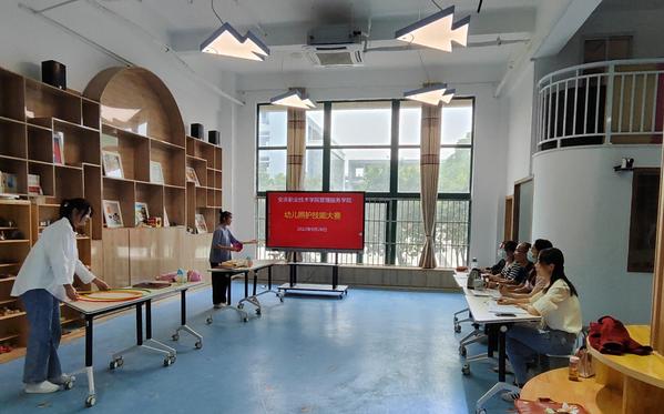 9月28日及9月29日下午举办的幼儿照护技能大赛,包括幼儿照护和孤残儿童护理技能两大赛项,其中幼儿照护技能大赛分为早期发展模块和婴幼儿生活照护模块,包含婴幼儿粗大动作、精细语言、饮水指导等项目,孤残儿童护理技能包含婴幼儿高热惊厥和红臀护理两个项目。本次大赛使学生了解并学习了托育工作的从业要求与标准,检验了学生的适岗综合技能,促进了人才培养质量的提升,达到兼顾实用性、操作性、观赏性为一体的目的。