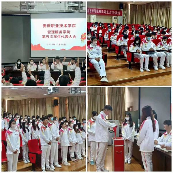 为深入学习贯彻党的二十大精神,全面落实习近平总书记关于青年工作的重要思想,深入推进学生会改革,提升团学组织活力,更好服务师生,2022年10月29日,管理服务学院第五次学生代表大会在3号教学楼216召开,学院党总支副书记丁凡、学生管理科科长汪婷、团总支书记梁妞、副书记练思雨和校学生会代表翟梦瑶出席会议,101名学生代表参加会议。