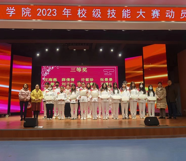 活动中,首先对2022-2023学年度第一学期校级技能大赛5个赛项中获奖的41位同学进行了表彰,颁发了获奖证书。