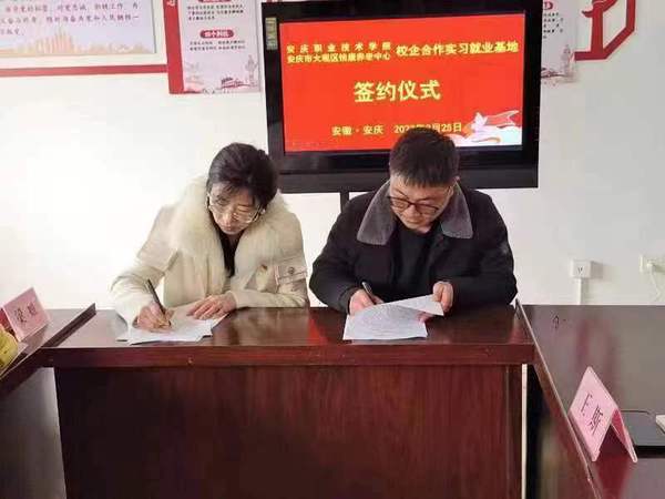 2月25日上午,管理服务学院与安庆市大观区怡康养老中心举行校企合作实习就业基地签约暨挂牌仪式。安庆市大观区怡康养老中心董事长王荣平、管理服务学院党总支书记、院长陈颖、副院长李敏、党总支副书记丁凡、安庆市大观区怡康养老中心负责人王斯、智慧健康养老服务与管理专业负责人何世亮出席了活动,参加活动的还有安庆市大观区怡康养老服务中心院长、管理服务学院学生科科长、团总支书记及智慧健康养老服务与管理专业学生20余人。