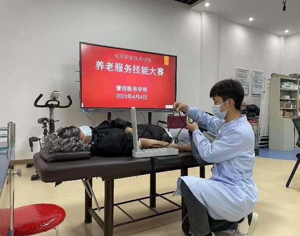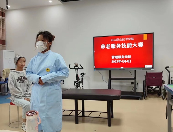 为践行“岗课赛证”综合育人模式,培养智慧健康养老服务与管理创新型人才,促进学生知识技能融合。4月4日中午,管理服务学院在实训楼老年照护综合实训室举办2023年校级养老服务技能大赛。2022级智慧健康养老服务与管理专业的57名同学全体参加养老服务技能大赛培训,经过两轮的初赛选拔,有11名选手入围现场总决赛。