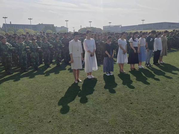 体育场上,管理服务学院党总支书记、院长陈颖携班子成员出席了活动,新生辅导员带领新生连队参加了活动。仪式由院团总支副书记练思雨主持。陈颖告诫同学们勿忘国耻、珍惜和平,并希望同学们努力学习科学文化知识,立志报国。9点18分,防空警报准时响起,全体新生脱帽、整理着装,向革命先辈及遇害同胞表示默哀。教室里,授课教师中止课程,与学生共同默哀。整个默哀活动持续了三分钟。