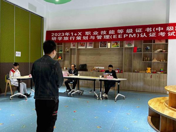 我校作为1+X研学旅行策划与管理(EEPM)试点单位,学校领导高度重视,制定并完了相关培训、考核、激励制度,保障证书考核工作顺利开展。二级学院多次召开协调会,了解考前培培训及考务筹备工作,克服了教学配套资源不足、教学任务紧迫等困难,最终,在志愿者的协助下,考生依次从候考区、备考区到各个考场,流程衔接井然有序,两天的考试圆满完成。