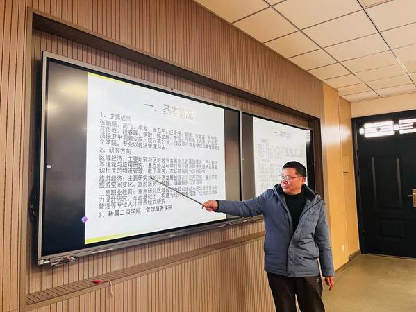 新年伊始,管理服务学院全体师生以饱满的热情投入到文旅康养专业群建设的各项工作中去,元月24日下午在314会议室召开在建集体项目建设研讨会,管理服务学院院长陈颖及三个在建的集体项目以及“区域经济研究所”科创平台项目成员参加了研讨会,研讨会由副院长李敏主持。