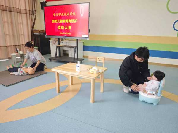 婴幼儿托育服务与管理专业举办了婴幼儿照护和婴幼儿健康养育照护两个赛项的比赛。其中,婴幼儿照护技能大赛分为早期发展模块和婴幼儿生活照护模块,包含婴幼儿粗大动作、精细语言、饮水指导等项目,婴幼儿健康养育照护技能包含婴幼儿心肺复苏和幼儿如厕两个项目。本次大赛使学生了解并学习了托育工作的从业要求与标准,检验了学生的适岗综合技能,促进了人才培养质量的提升,达到兼顾实用性、操作性、观赏性为一体的目的。