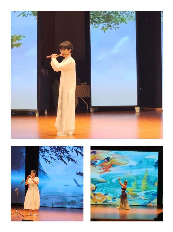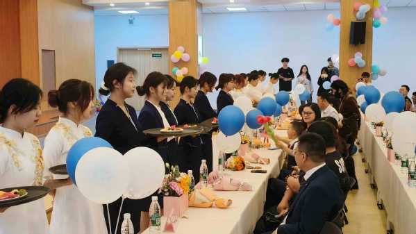 此次展演活动包含酒店、旅游专业技能展演和冷餐会两个部分。酒店专业技能展演有酒店工服秀、职业礼仪操、托盘舞、调酒、插花、茶艺等相关技能展示。旅游专业技能展演有拉丁舞、藏族舞、竹笛、傣族舞、葫芦丝等才艺展示。冷餐会内容涵盖了嘉宾迎送、嘉宾餐中服务、果盘制作、伴手礼制作、会场布置等相关技能展示,旨在通过让同学们“沉浸式”现场操作,将《宴会餐饮》、《酒店客房服务》、《酒店礼仪》、《酒店技能实训》等相关理实课程、旅游技能大赛备赛等学习成果进行集中展示和运用,促进一二课堂同向同行。