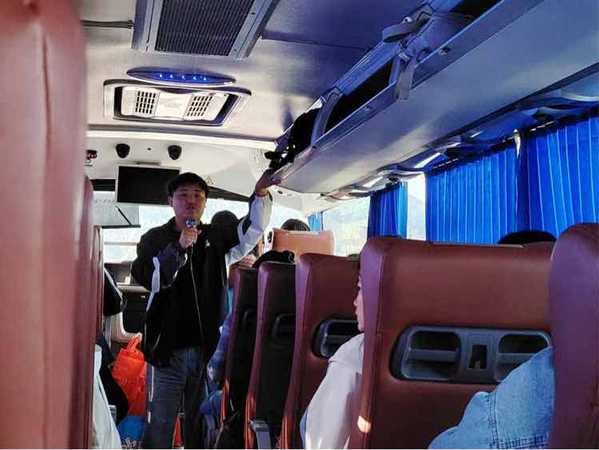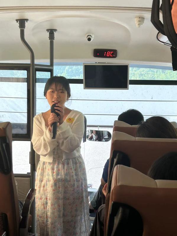 为了更全面深刻的体验导游工作,学院组织学生在车上进行欢迎辞、景点讲解、才艺展示、欢送辞等项目的展示,同时特邀旅行社三位资深导游进行示范讲解和点评,在景区安排当地优秀地接导游进行现场景点讲解示范。