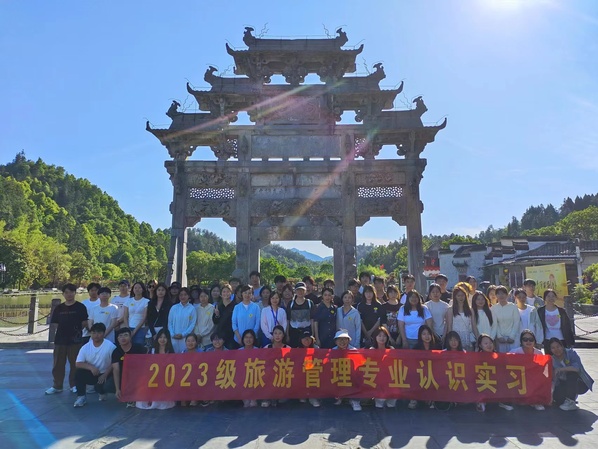 此次认识实习活动以徽文化为切入点,徽州古村落中的民居、祠堂和牌坊等建筑文化,国家非物质文化遗产徽州三雕中所蕴含的文化内涵和美学价值,以及楹联中所蕴含的礼仪、读书、经商的道理,都给同学们留下了深刻的印象。黄山作为世界文化与自然遗产、世界地质公园,拥有壮美的自然景观和独特的文化魅力,这些都激发了学生对旅游管理专业的学习兴趣,树立了学生对导游职业所肩负的传播和弘扬中华优秀传统文化的职业认同感与使命感。    旅游管理专业一直致力于培养具有实践能力和创新精神的高素质技能型旅游人才。此次认识实习是专业教学的重要环节,旨在让同学们将理论知识与实践操作相结合,提升专业素养和综合能力。实习期间,同学们不仅认真聆听导游的讲解,学习专业的导游技巧和知识,还积极与景区工作人员交流,了解景区运营的实际情况。同时,他们通过实地调研,对游客行为和需求也有了更深刻的理解,这为他们今后的专业学习和职业发展奠定了坚实的基础,整个实习过程井然有序、气氛愉快。参与实习的同学们纷纷表示,此次认识实习收获很多,不仅拓宽了视野,增长了见识,更让自己明确了自己未来努力的方向。