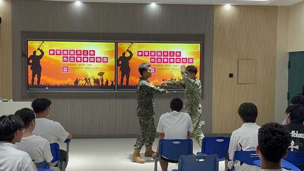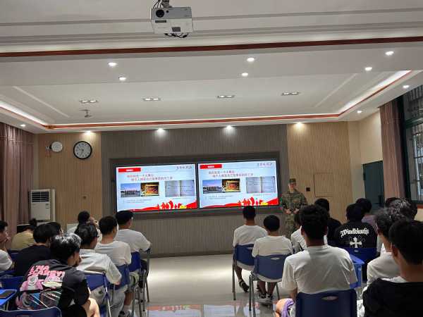 为强化大学生国防观念,加大征兵宣传力度,普及征兵政策,激发参军报国热情,营造爱国强军的校园文化氛围,管理服务学院于2024年6月13日晚在三号教学楼206教室举行了大学生征兵宣讲活动。本次活动由院学生工作负责同志主持,2022级优秀退役士兵代表进行宣讲,院团总支书记及2022、2023级学生代表40余人参加活动。