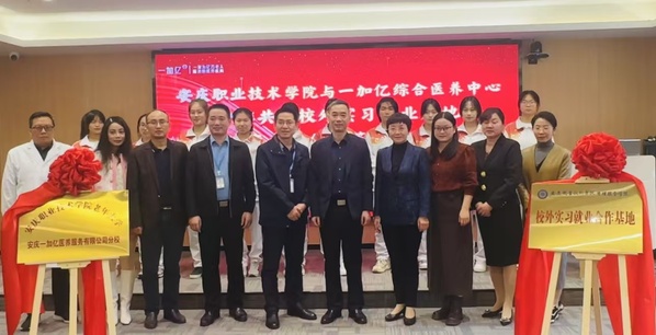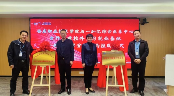 签约仪式上,安庆一加亿综合医养中心公司法人代表刘林志致欢迎词,执行院长余辉具体介绍了中心基本情况及发展规划,管理服务学院院长陈颖、继续教育学院院长姚咏分别介绍了学校学院及养老专业和老年大学建设状况。