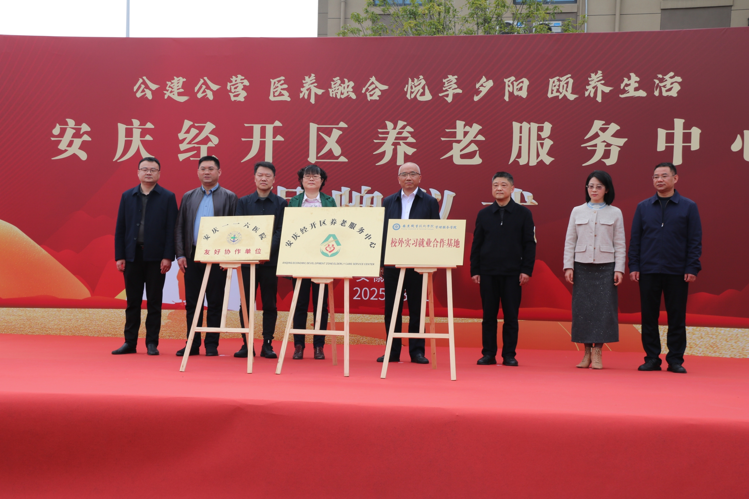 仪式上,老峰镇党委书记陈士兵与李敏共同为我院经开区养老服务中心“校外实习就业合作基地“揭牌。老峰镇负责同志介绍了养老服务中心项目情况,中心定位为“公建公营、医养融合”,为长者提供全老龄、全周期健康智慧医养服务。经开区党工委委员、管委会副主任毕圣国表示养老服务中心的建成,是经开区积极应对人口老龄化、提民生福祉的重要举措,将有力推动区域养老服终事业高质量发展。李敏表示,校企深度合作不仅能提升养老服务中心的专业化服务水平,也为学生提供了贴近行业需求的实践平台,助力养老服务行业的高质量发展。双方后期将从共建实习实训基地、协同育人、师资共建、教学改革、社会服务联动等方面开展深度合作,着力提升区域养老服务的专业化水平。