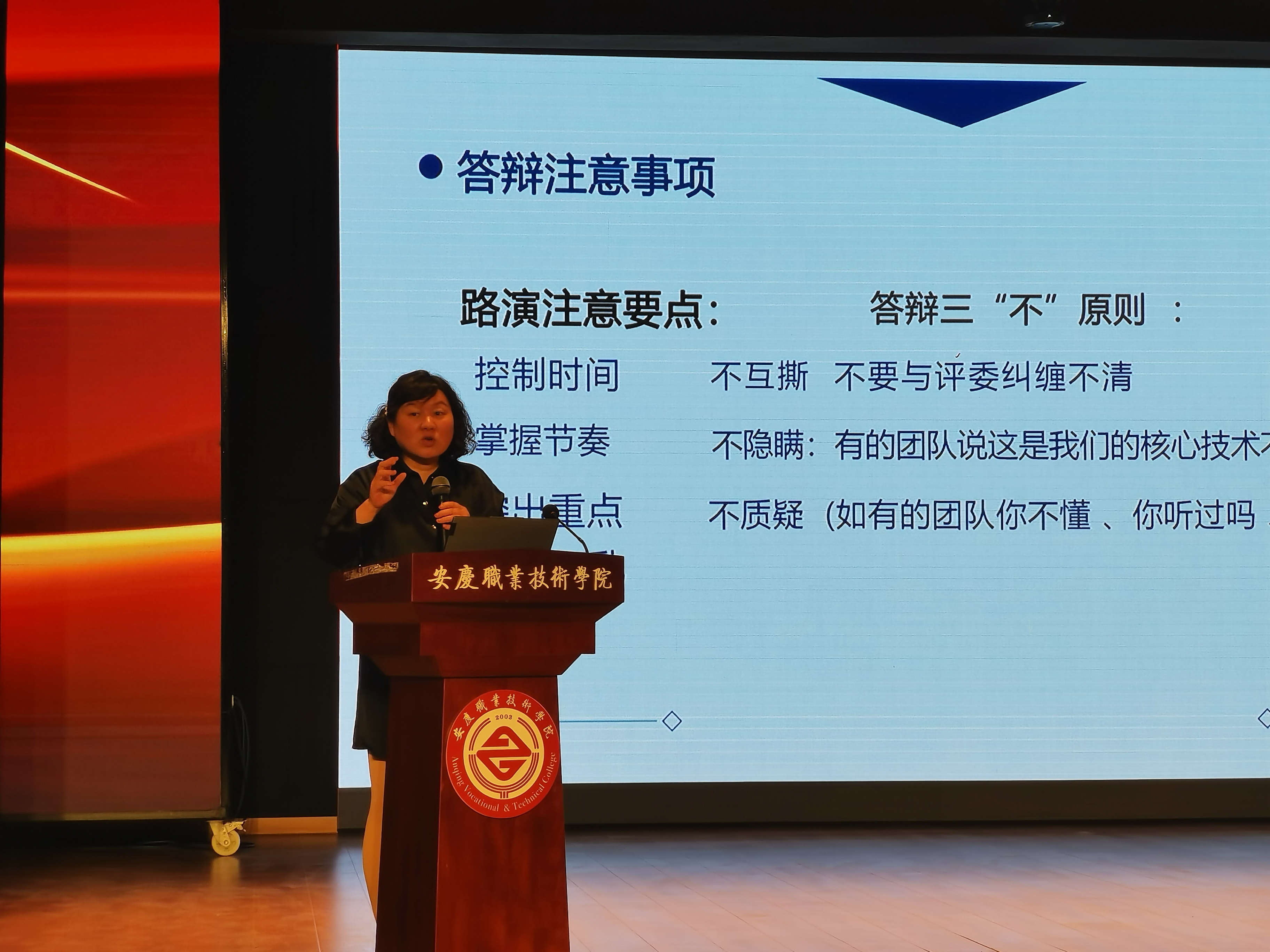 在技能大赛动员环节,学院特邀世界技能大赛中国区技术指导专家、安徽云驴通通信技术有限公司总经理程伟勇作专题培训。程伟勇基于世界技能大赛评分体系,从选题策略、作品迭代、展示规范三个维度系统解读竞赛标准,强调要注重项目技术含量与实用价值的统一。创新创业大赛培训环节,继续教育学院院长姚咏以《商业计划书的路演逻辑构建》为题开展专题培训。通过案例分析提出三层次论证法:顶层设计要突出商业模式创新性,数据论证需构建财务预测模型,案例验证应选取行业标杆对标分析。特别指出,优质项目应聚焦专精特新领域,关注银发经济、智慧康养等国家战略方向。