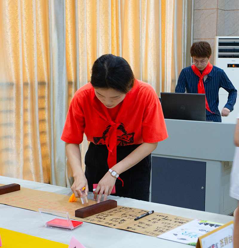 毕业典礼在庄严雄壮的国歌声中拉开帷幕。第一环节的主题是“归来仍是少年”,由辅导员和教师代表为毕业生系上红领巾并送上殷殷祝福,希望大家不忘初心,愿同学们归来仍是少年。第二环节的主题是“请党放心  强国有我  留印为证”,信息技术学院负责人为2021届优秀毕业生颁发专门定制的刻有学生姓名和校徽校训的水晶纪念章,并在毕业签名簿上签名留印,既表达了对母校的依依不舍,更表达了同学们强技报国的决心。在第三环节,学院为毕业生代表颁发毕业证书并合影留念。