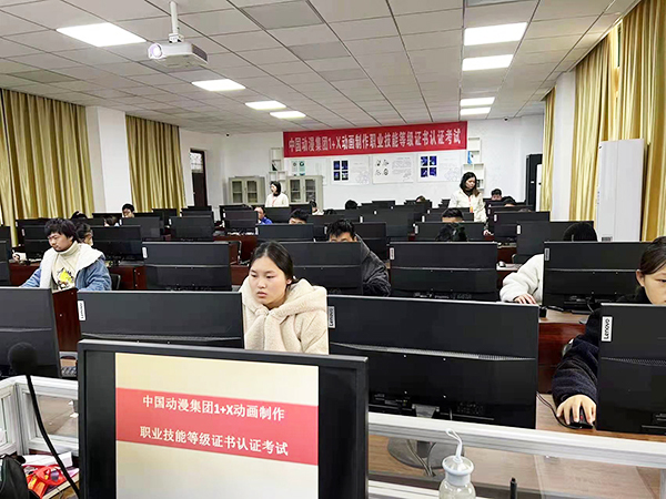 12月8日,中国动漫集团“1+X”动画制作职业技能等级证书认证考试在学校2号教学楼动漫综合实训室举行。来自信息技术学院动漫制作技术专业2019级共计60名学生参加了考试。