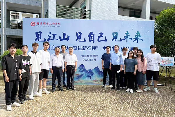 翰墨丹青,锦绣华章。为迎接党的二十大胜利召开,弘扬中华优秀传统文化,展示师生良好精神面貌,6月10日,信息技术学院在二教草坪广场举办了“见江山见自己见未来——喜迎党的二十大,奋进新征程”主题书画作品展。校领导童宏葵、毕明生、李克让、谭维奇、程飞、陈继平、吴何珍、李五一出席并指导此次主题书画展。