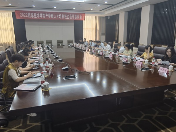 为进一步落实立德树人根本任务,贯彻新时期国家职业教育的新理念、新要求,深化“岗课赛证”融通,打造产、学、研、用协同育人平台,提升专业人才培养质量,8月25日下午,信息技术学院召开“2022信息技术学院产学研人才培养校企合作恳谈会”。安徽峰速网络智能科技有限公司总经理李重、安徽永安电子科技有限公司总经理高雷、新大陆科技集团区域经理汪海滨、新大陆科技集团工程师马达、新华三(H3C)技术有限公司产品经理马海峰、华为院校质量与运作部部长翟朝平、华为人才培养解决方案专家陈曦、华为安徽院校客户经理郭恒民、华为安徽政企安庆渠道经理朱帅、华为安徽政企合作伙伴发展与管理部陈余洋、天津迅腾科技工程师万志强、安徽辰夫时光坐标产业学院副院长刘德为、安徽辰夫科技副总经理李玲和蒋彦等十四位企业专家应邀出席恳谈会。学院管理人员、全体专业建设负责人参加了会议,会议由信息技术学院党总支书记、院长疏国会教授主持。