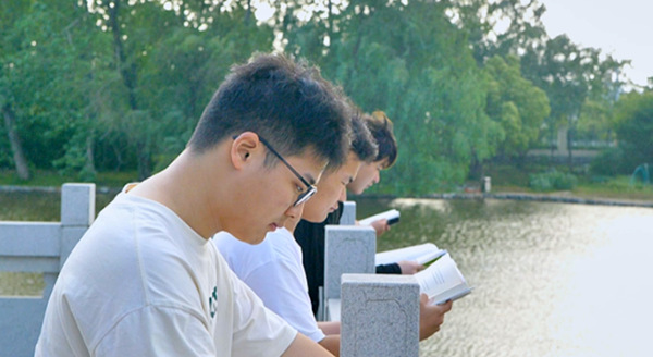 交流是照映一个人阅读成果的一面明镜。为了激发大家参与阅读的积极性,学院举办了“读书沙龙”活动。大家带着自己借阅的图书聚集到听雨亭,微风轻拂、波光粼粼,同学们围绕听雨亭长廊一字坐开,两三人或三五人为一小组,就自己或小组其他同学关于书中某一观点或问题展开讨论,一千个读者就有一千个认识和理解,读书沙龙让不同的思想碰撞在一起,相互间得到了新的启迪。