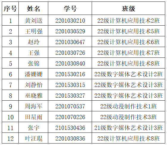 根据《久久久一区二区三区|亚洲精品一区二区三区不|久久av网|精品国产一区二区三区久久久久久|午夜精品av|久久久久久久久久久久久久av|日韩亚洲欧美综合学生学籍管理实施细则》第四十六条,经信息技术学院会议研究,决定给予黄刘送等12名同学(名单见附件)退学处理。现予以公示,公示时间:2023年10月10日至10月16日。公示期内,若有异议,请以书面形式向信息技术学院学生管理科反映。