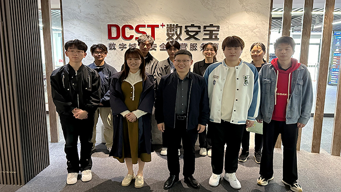 与此同时,当得知母校师生代表的到来,在数安宝公司工作的往届校友满心欢喜,早早便在公司门外等候。陈富汉一行详细了解了在岗校友的工作状况和职业发展,鼓励校友们与在校的学弟学妹们保持经常联系,分享工作经验,促进在校生的就业指导。