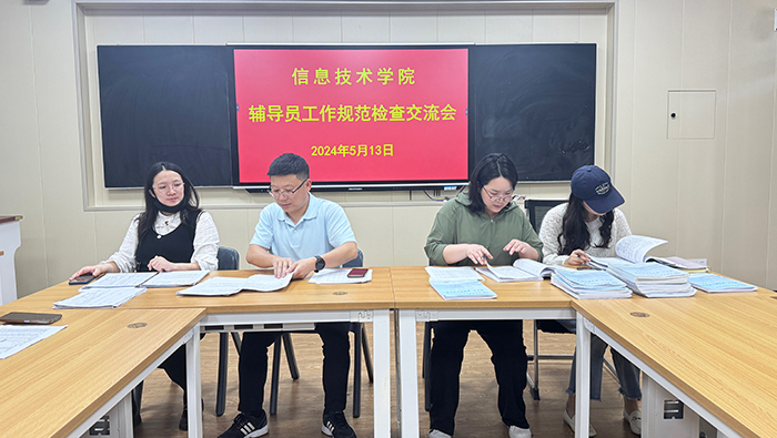 为进一步强化辅导员工作规范意识和责任意识,促进辅导员之间的经验共享,提高业务水平,5月13日下午,信息技术学院在2#206教室组织召开了辅导员工作规范检查交流会。会议由学院党总支副书记陈富汉主持,学生管理科科长、团总支书记及全体辅导员参加。