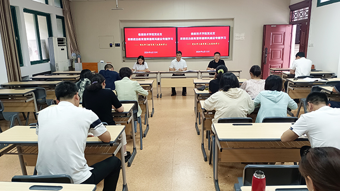 6月13日下午,信息技术学院党总支在2号教学楼203教室开展党纪学习教育第三次集体学习。院党总支书记疏国会主持学习会,学院全体党员教师参加学习。