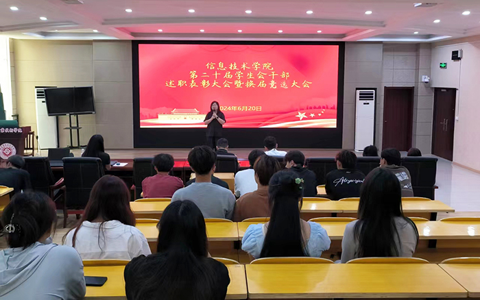 首先,学生会主席团成员、团总支学生副书记依次上台进行述职,总结工作、反思不足、分析问题、提出对策。接着,学生会各部门执行部长、团总支委员对2023-2024学年所在部门、岗位的工作进行汇报与总结,展示工作风采,分享工作经验,提出未来规划。