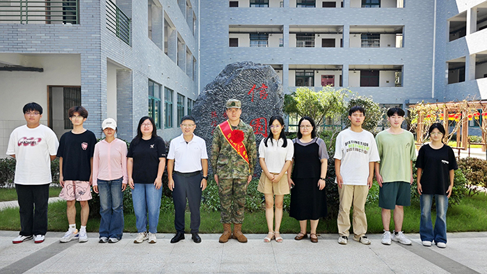 陈富汉首先向周振振同学表示祝贺。他谈到,他不仅是周振振同学的任课教师和技能大赛指导老师,还是他的入党介绍人,与周振振亦师亦友。他在讲话中深情回顾了周振振在校期间的成长历程,高度赞扬了周振振在学业和个人发展方面取得的成绩,强调了工夫在平时、积累在点滴的道理,寄语周振振要不忘入伍初心,牢记军人使命,在新的岗位上再创佳绩。同时,陈富汉也鼓励在场的同学们以周振振为榜样,勇于追梦。
