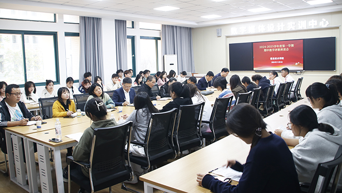 11月6日下午,信息技术学院2024-2025学年第1学期期中学生评教座谈会在2号教学楼206教室召开,校督导陈兆著、陈再高、吴跃虎应邀出席座谈会,信息技术学院院长疏国会、各专业建设负责人、教学管理部门负责人、各班级学生代表参加会议,会议由信息技术学院副院长熊祖涛主持。