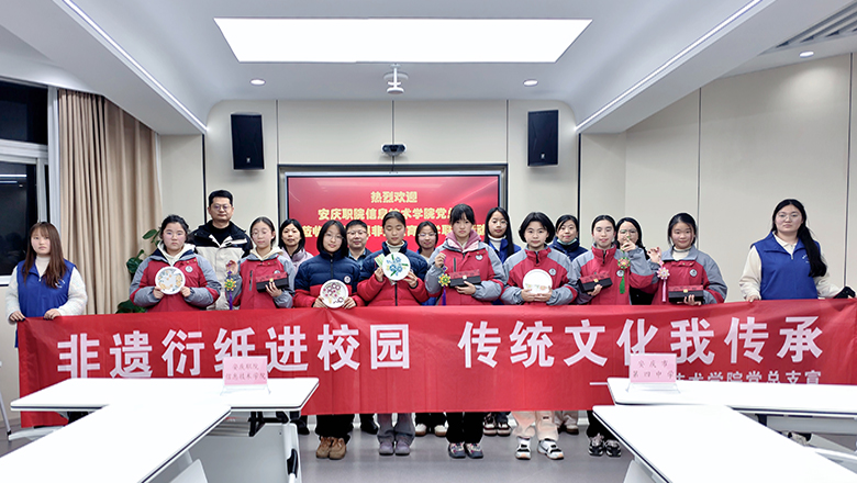 为进一步弘扬中华优秀传统文化,传承非遗衍纸技艺,12月25日,信息技术学院教师党支部走进安庆市第四中学,与该校开展非遗进校园联学联建活动。第四中学党总支书记李飚、校长吴伟荣,信息技术学院党总支书记、院长疏国会和双方师生代表参加了此次活动。