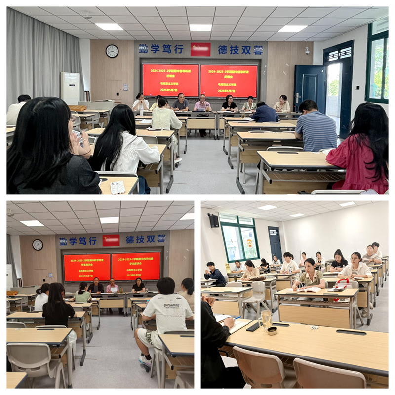 为切实加强我校思政课教学管理和教学质量监控,进一步提升思政课教育教学效果,根据教务处《关于开展2024-2025学年第二学期期中教学检查工作的通知》文件要求和马克思主义学院期中教学检查工作安排,5月7日下午,学院在3号教学楼107教室召开期中教学检查学生座谈会暨期中教学检查督导反馈会。马克思主义学院院长余锋、校教学督导、各教研室主任参加座谈会,所有承担教学任务的教师参加期中检查督导反馈会,会议由教学管理负责同志主持。
