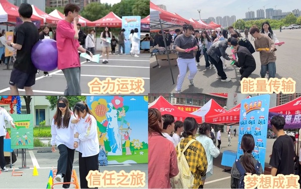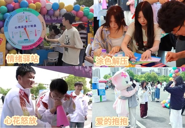 在自我内在探索体验区,“HRV减压”“心灵奇旅”“脑力激荡”与“眼疾手快”等项目,引导大家对内心深处梦想与期待的探索,也考验了大家的思维与反应能力。在情绪压力管理体验区,同学们通过参加“情绪驿站”“涂色解压”“心花怒放”和“爱的抱抱”等活动,让大家正视并释放了压力,舒缓了紧张情绪,传递了同学间的温暖和支持力量。在人际与团队关系体验区,大家通过共同参与“合力运球”“能量传输”“信任之旅”“梦想成真”等环节,增进了同学间的默契、协作与信任,激发了大家对梦想的追求。积极正向心态体验区以“笑对人生”“一抹新绿”“心声电台”和“心愿大树”等活动,传递了积极乐观的生活态度,并提供了表达、成长与希望的平台。