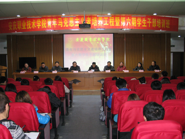 为进一步提高广大学生干部的思想觉悟和综合素质,明确学生干部的工作任务、职责、要求,更好地发挥学生干部的模范带头作用,127,由院团委组织举办的青年马克思主义者培养工程暨第六期学生干部培训班开班仪式在图文信息中心三楼学术报告厅举行。院党委委员、副院长毕明生、学生处负责同志、各系部党总支副书记、团总支书记(副书记)出席了开班仪式。