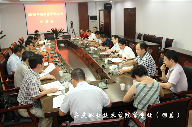 会上,学生处负责人介绍了2015年迎新及军训工作方案和总体安排,对数字化迎新系统的运用、日程安排、各部门职责、报到流程、新生入学教育以及军训工作安排作了解读和说明。各相关部门主要负责人介绍了本部门的迎新工作准备情况。(文:黄勤  图:王晓林)